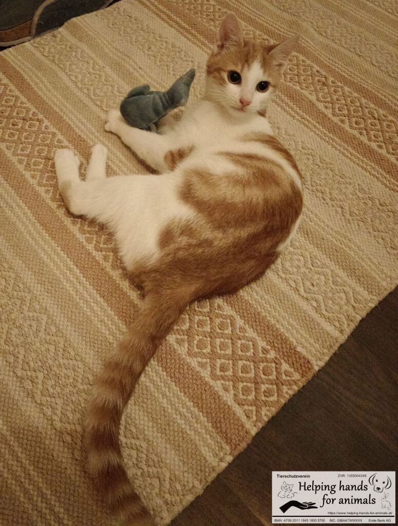 Polly lebt mit ihren Geschwistern und Eltern derzeit gemeinsam auf der Pflegestelle im 2444 Seibersdorf. Sie ist noch ein aufgewecktes, mutiges junges Mäderl das die Welt außerhalb des Pflegezimmers entdecken möchte. Sie kam gemeinsam mit ihrer Familie als Amtstierarztabnahme zu uns auf die Pflegestelle und gehörte einem alkoholabhängigen Menschen, der sich nicht um die Katzen kümmerte. Die Großfamilie hat bis dahin keine gute Erfahrung mit uns Menschen gemacht.