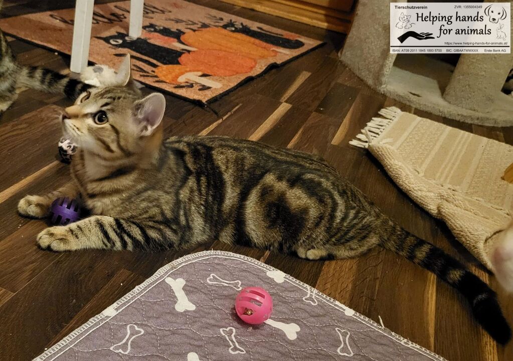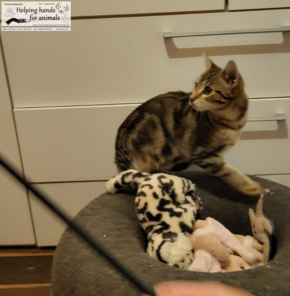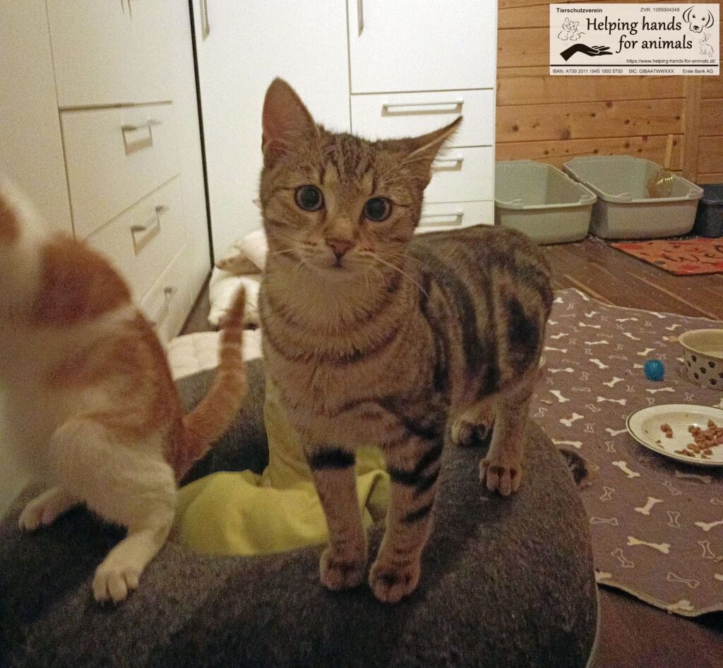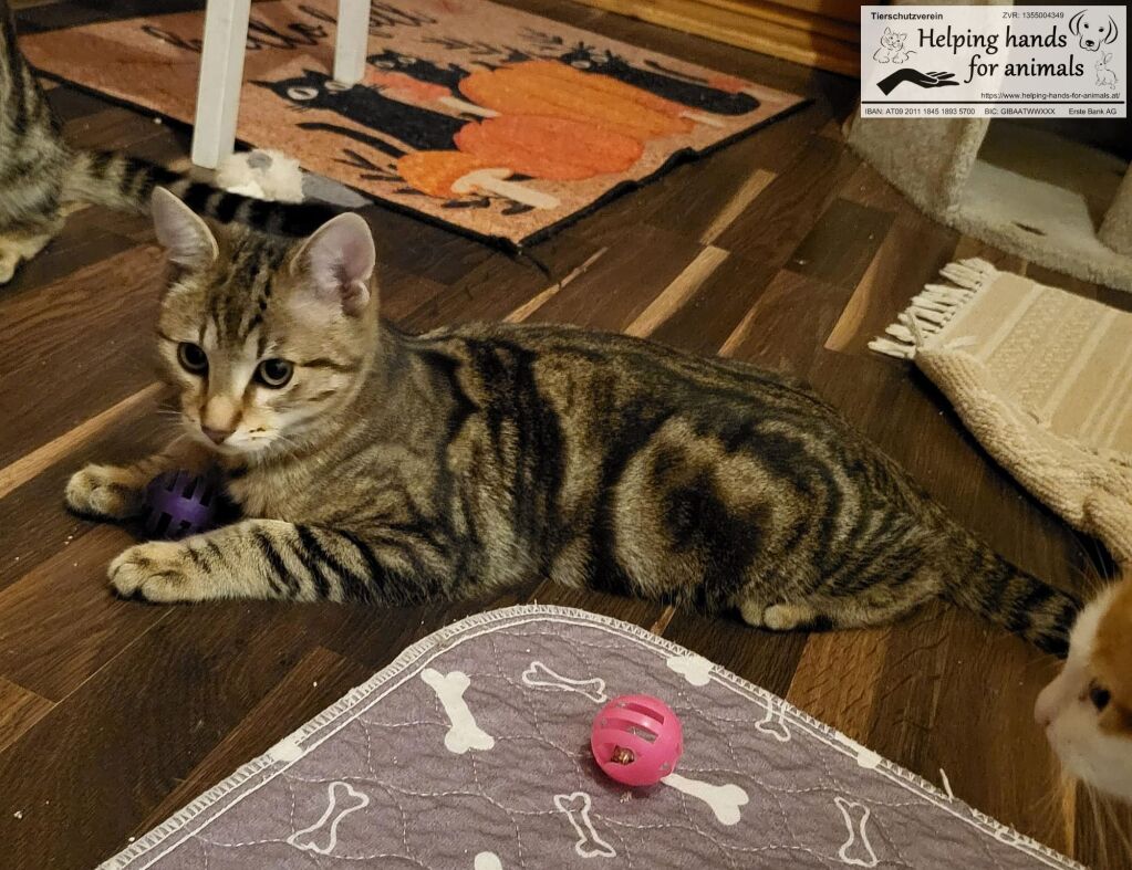 Der junge Flip hat sich schon gewandelt und gewinnt von Tag zu Tag mehr Vertrauen zu uns Menschen. Er ist verspielt und ein aufgewecktes kleines Kerlchen. Auch für Flip suchen wir ein sicheres Zuhause. Er kann entweder mit einem Geschwisterchen oder Freund aus dem Pflegezimmer ausziehen oder zu einer vorhandenen etwa gleichaltrigen Katze. Wer hat die Geduld ihn ankommen zu lassen und an seinem Vertrauen noch zu arbeiten?