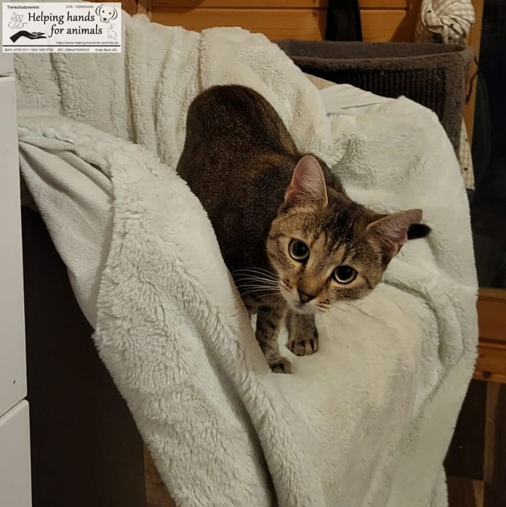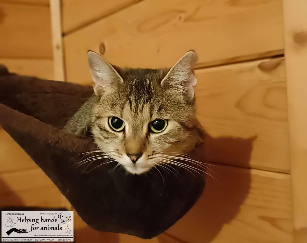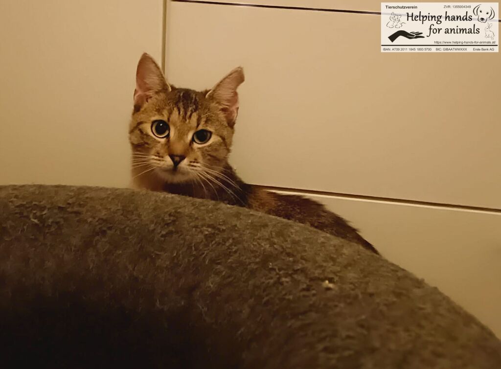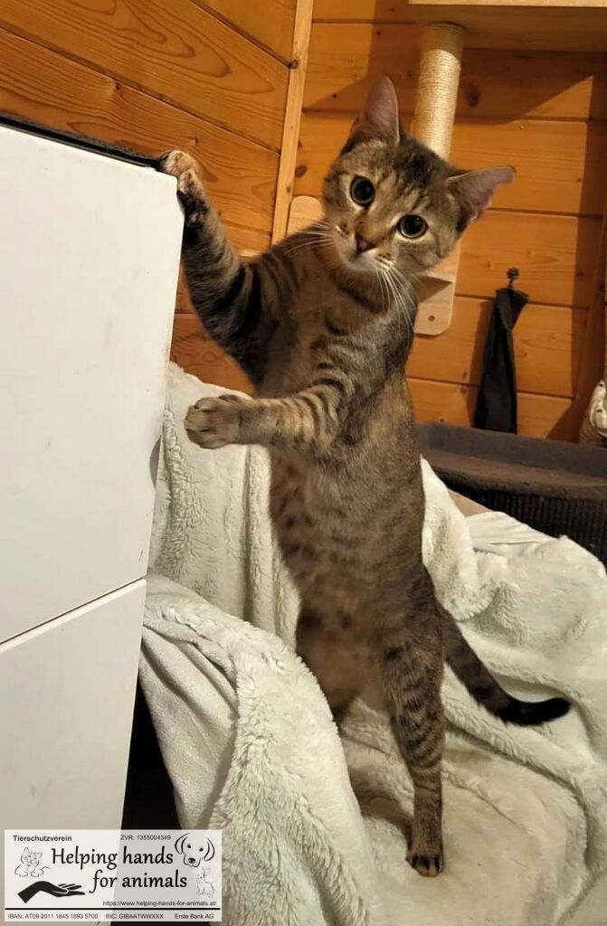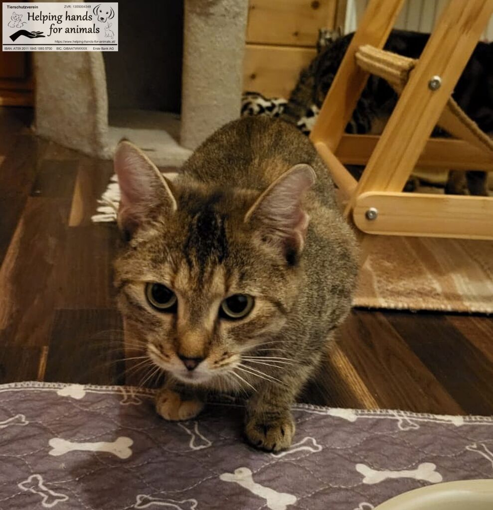 ISIS wird nicht in Einzelhaltung vermittelt. Sie kann zu einer bereits vorhandenen Katze oder gemeinsam mit einer Freundin aus dem Pflegezimmer ausziehen.