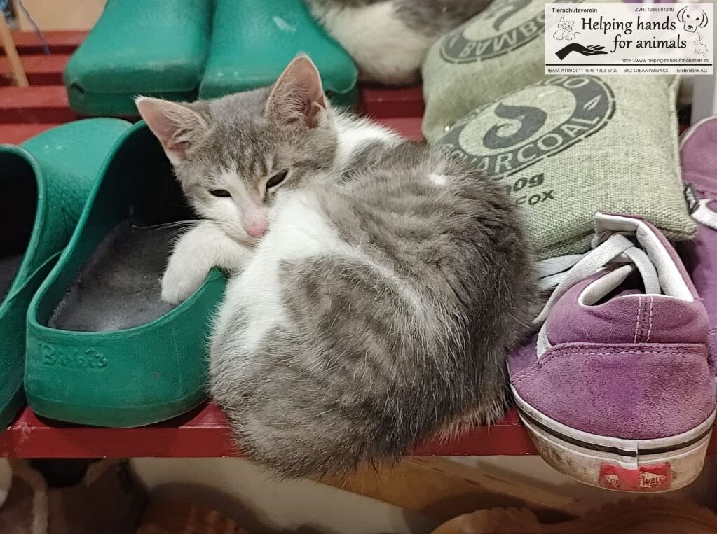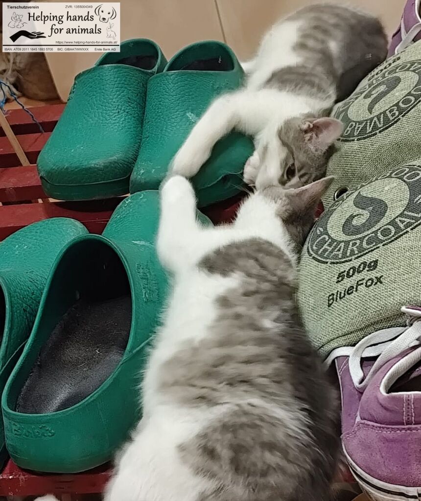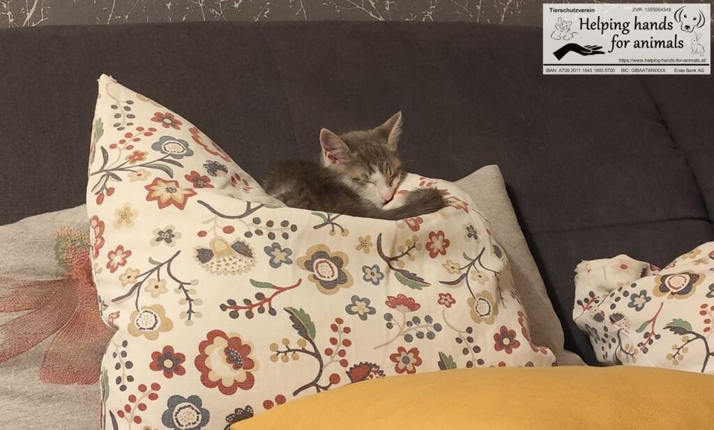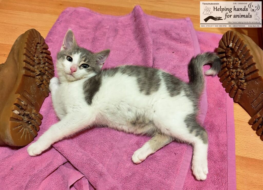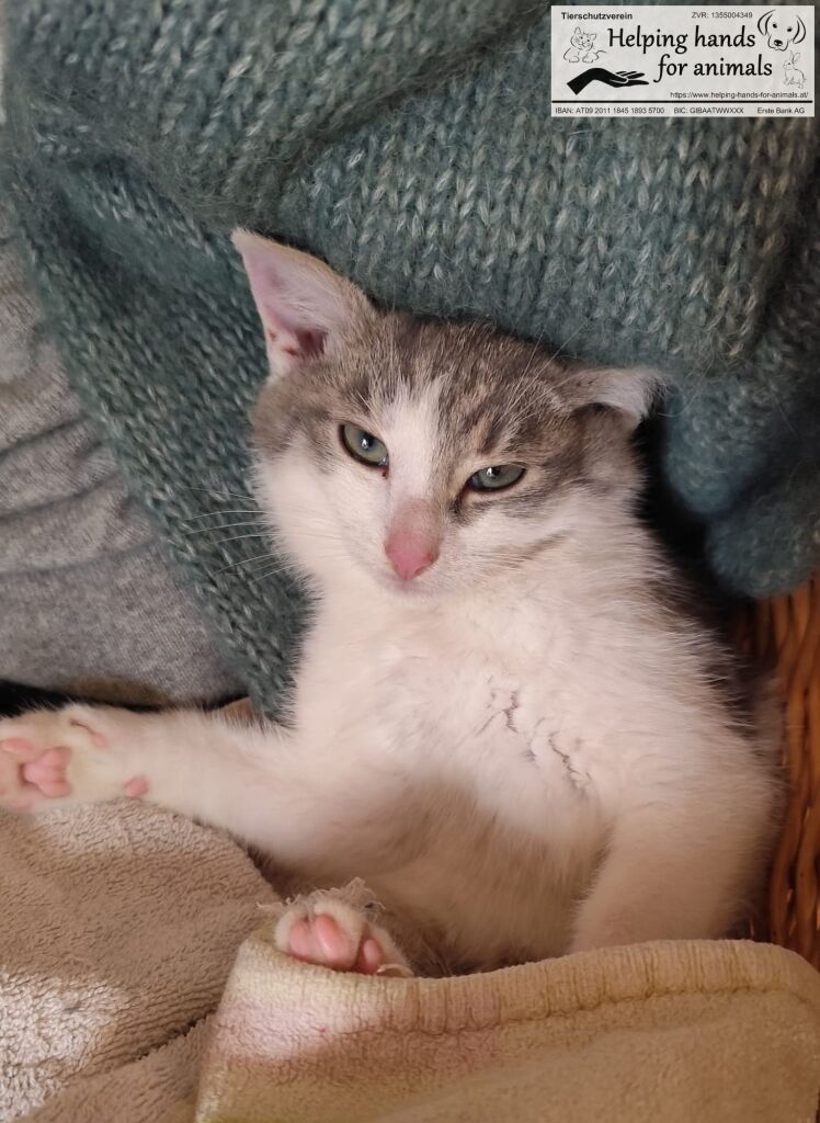 Am liebsten wäre es uns, wenn sie alle drei zusammen bleiben und gemeinsam in ein schönes Zuhause ziehen könnten. Zumindest werden sie aber zu zweit oder zu einem anderen Kitten im selben Alter dazu vermittelt.