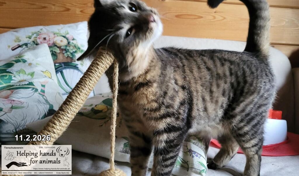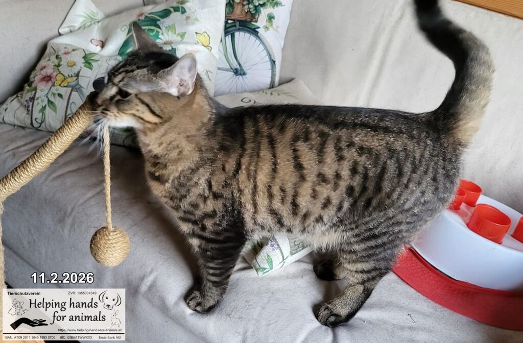 Der wunderschöne getigerte Kater BALI ist ca. 1–2 Jahre jung und auf der Suche nach Menschen, die ihm ein liebevolles Zuhause schenken möchten. Er stammt aus einer Familie, die sich leider nicht mehr ausreichend um ihn kümmern konnte und wurde abgegeben. Nun wartet BALI darauf, wieder ganz anzukommen