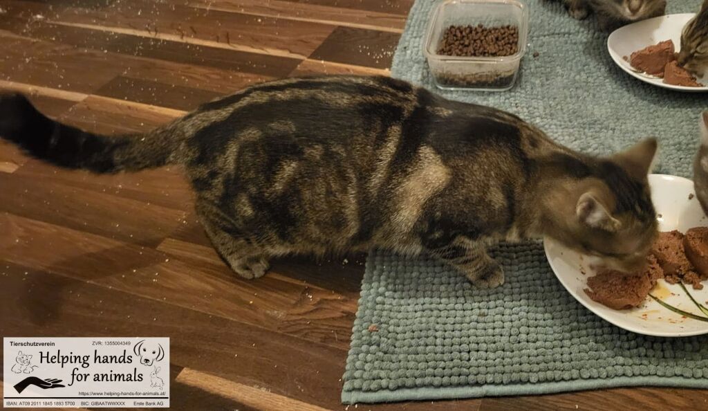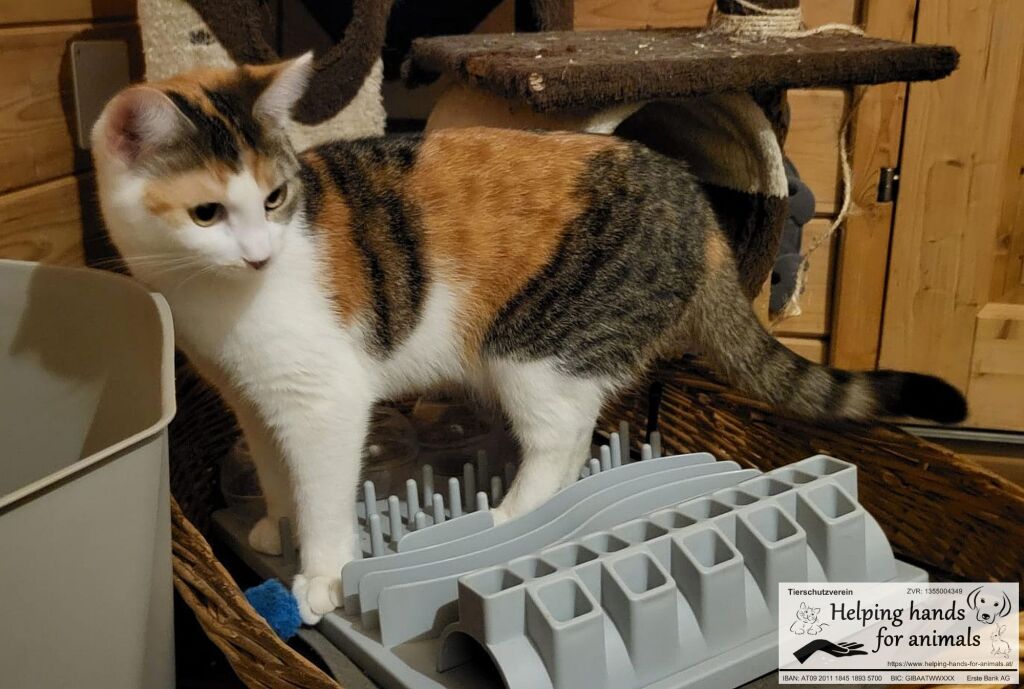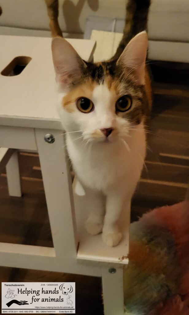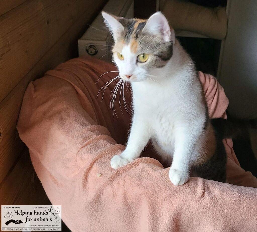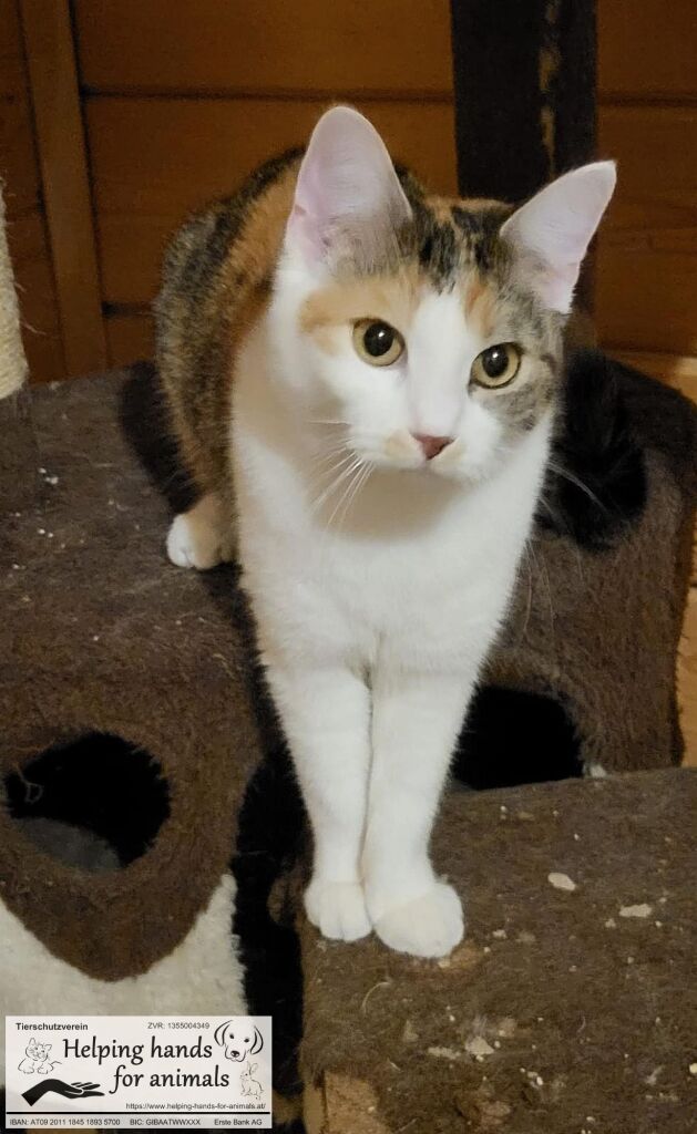 MIA (tricolor) und MARIA (getigert) könnten unterschiedlicher nicht sein. Während MIA immer in einem behüteten Zuhause aufwuchs, musste MARIA ihre 3 Kitten auf der Straße, ohne sicheres zuhause großziehen.